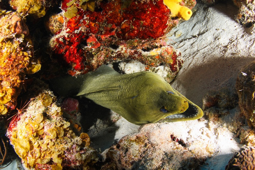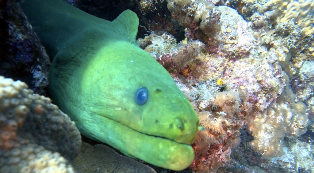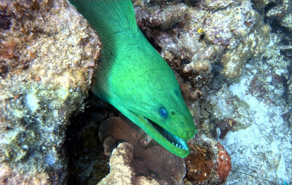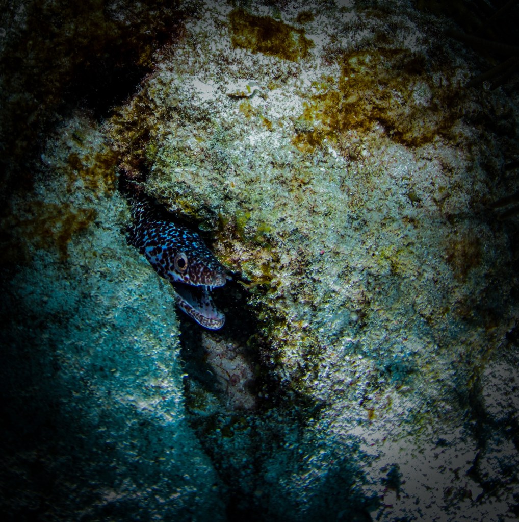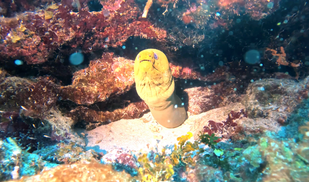 A Spotted Eel poking his head wondering what all the excitement is about…