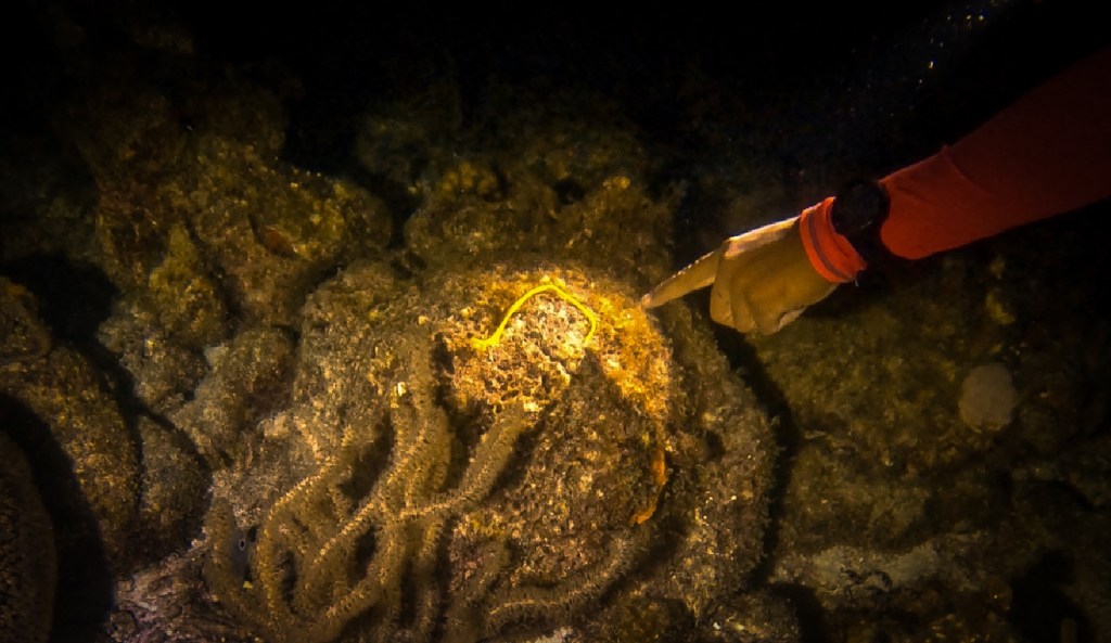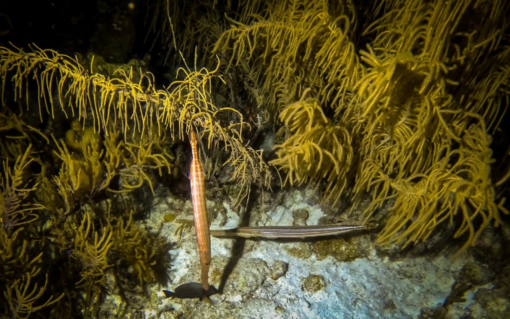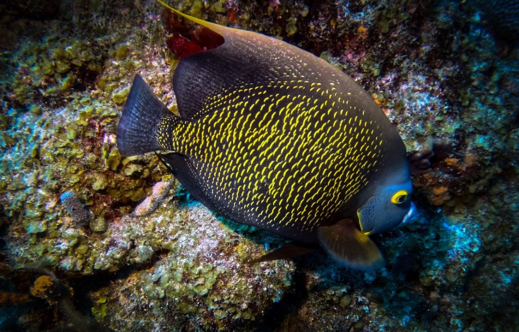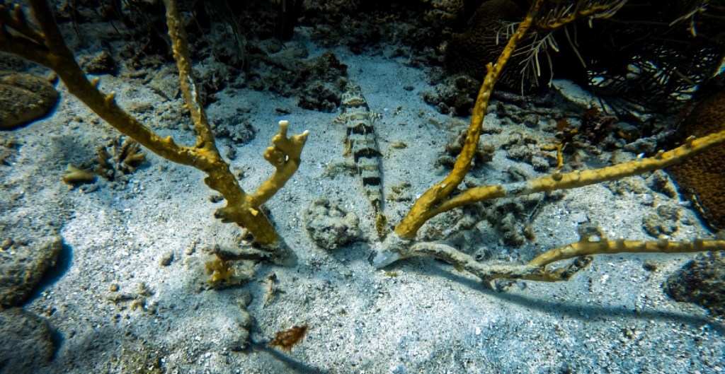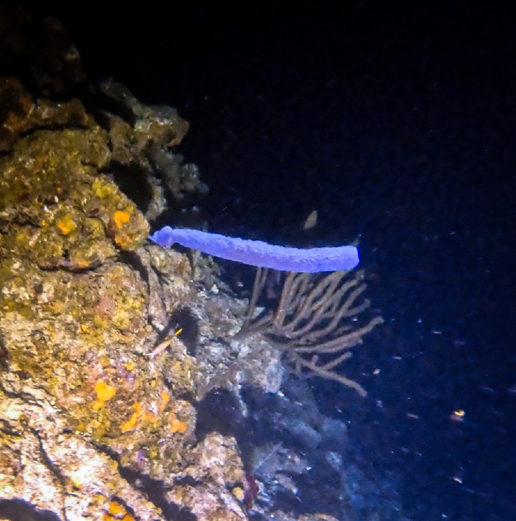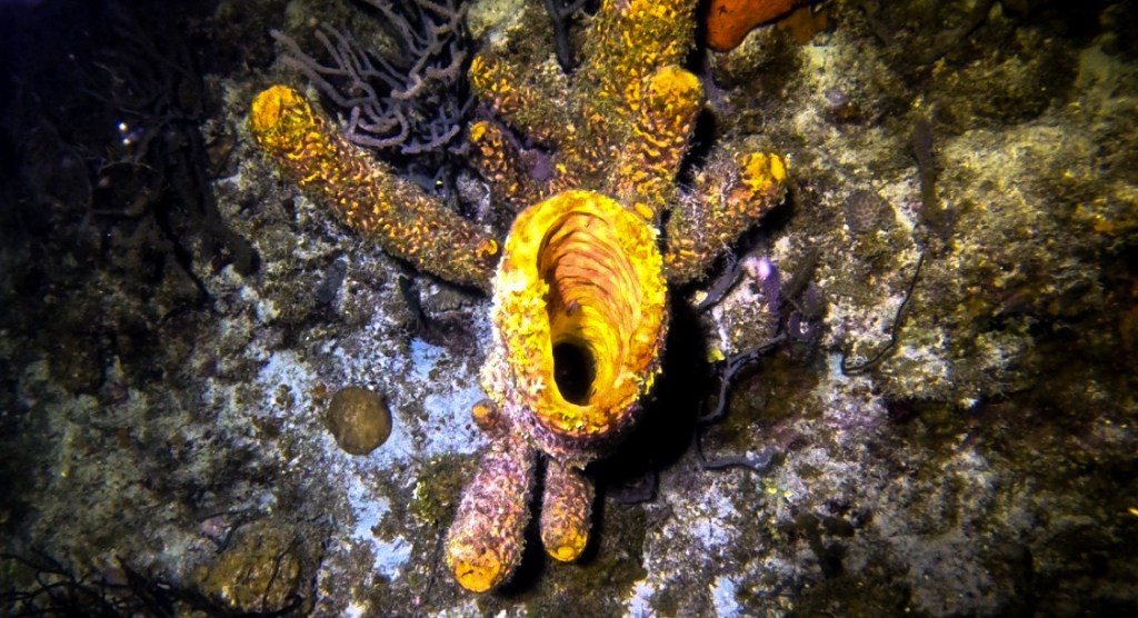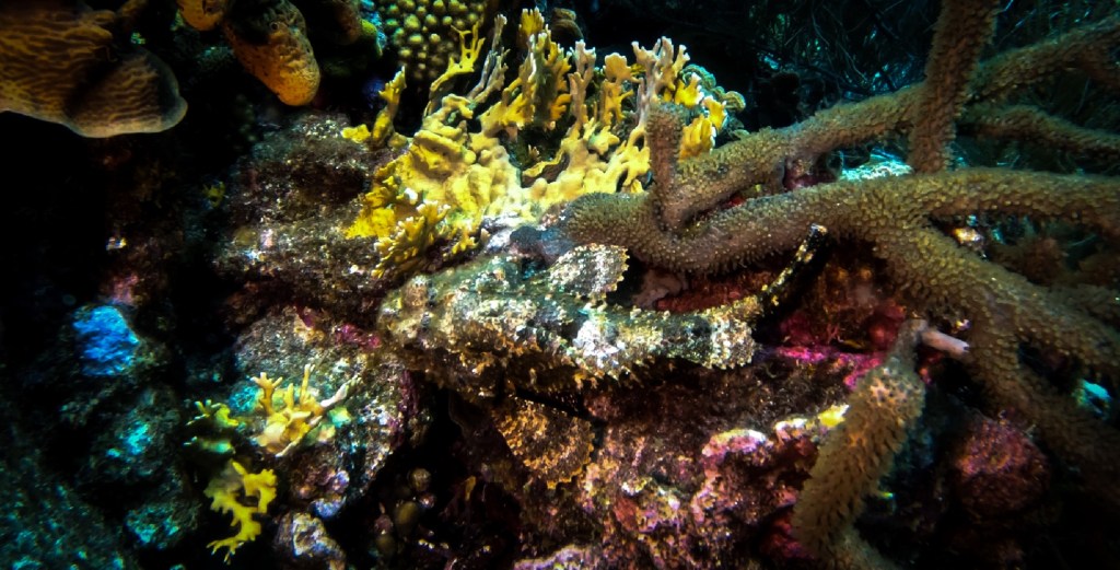 They do their night dives at a site called Tugboat, and for obvious reasons. After going out for about 25 minutes, we made the turn back and near where we started there was a….sunken tugboat.