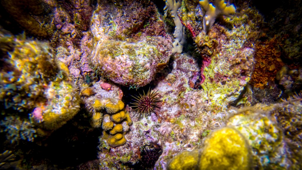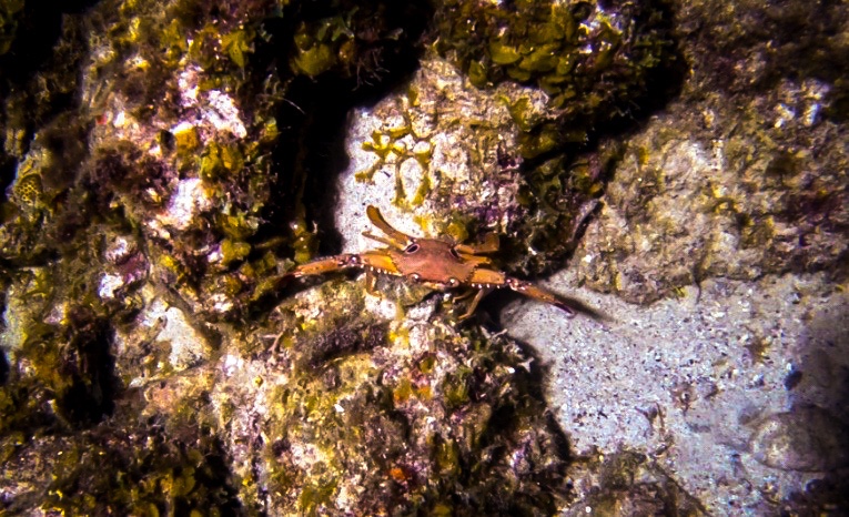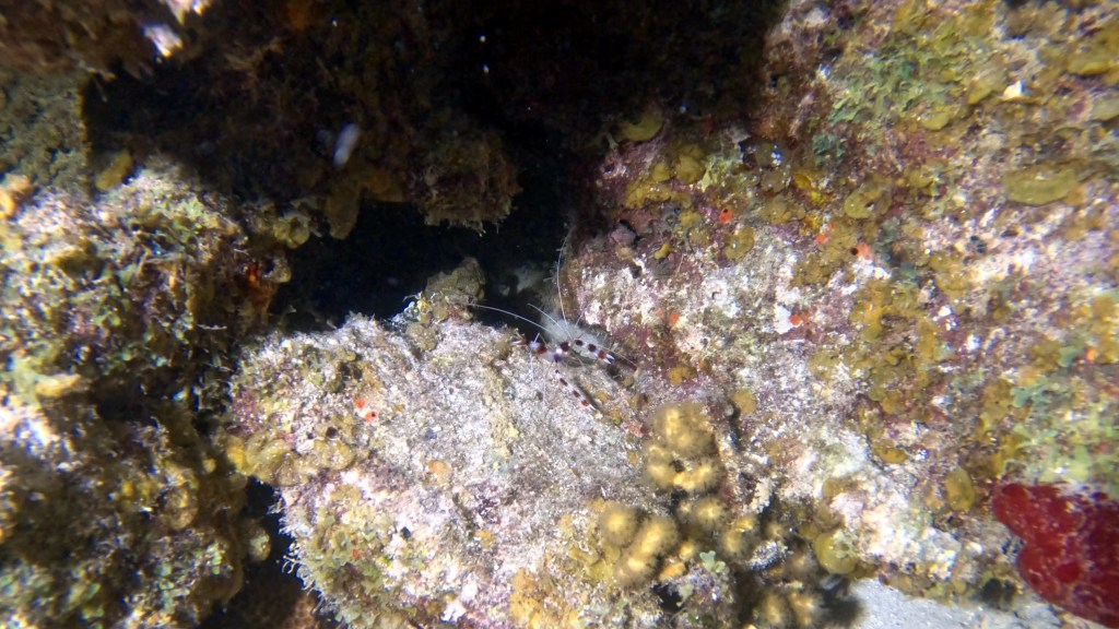 … This next group are some crustaceans we had seen on the night dive. Although in this first image it’s nearly impossible to see the Spiny Crab, you can see it more clearly as it moves in the following video. If it had not seen it move at the last second, I would have just kept on going.