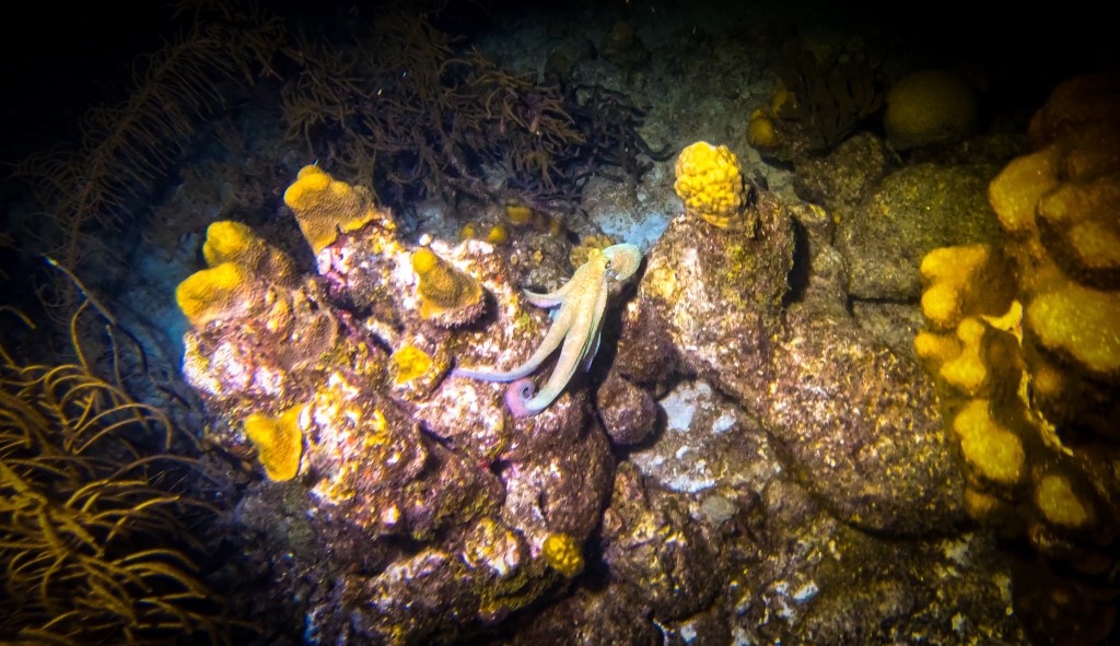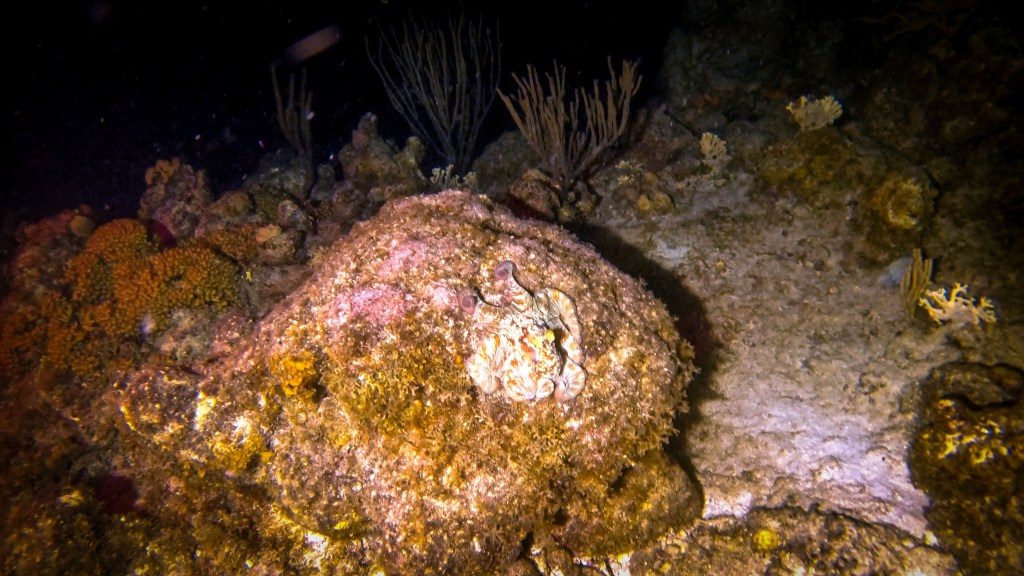 Seeing an octopus anytime is ALWAYS AWESOME, but at night they seem much more beautiful and their colors seem to “pop” so much more as well. Here’s what we saw that night…
