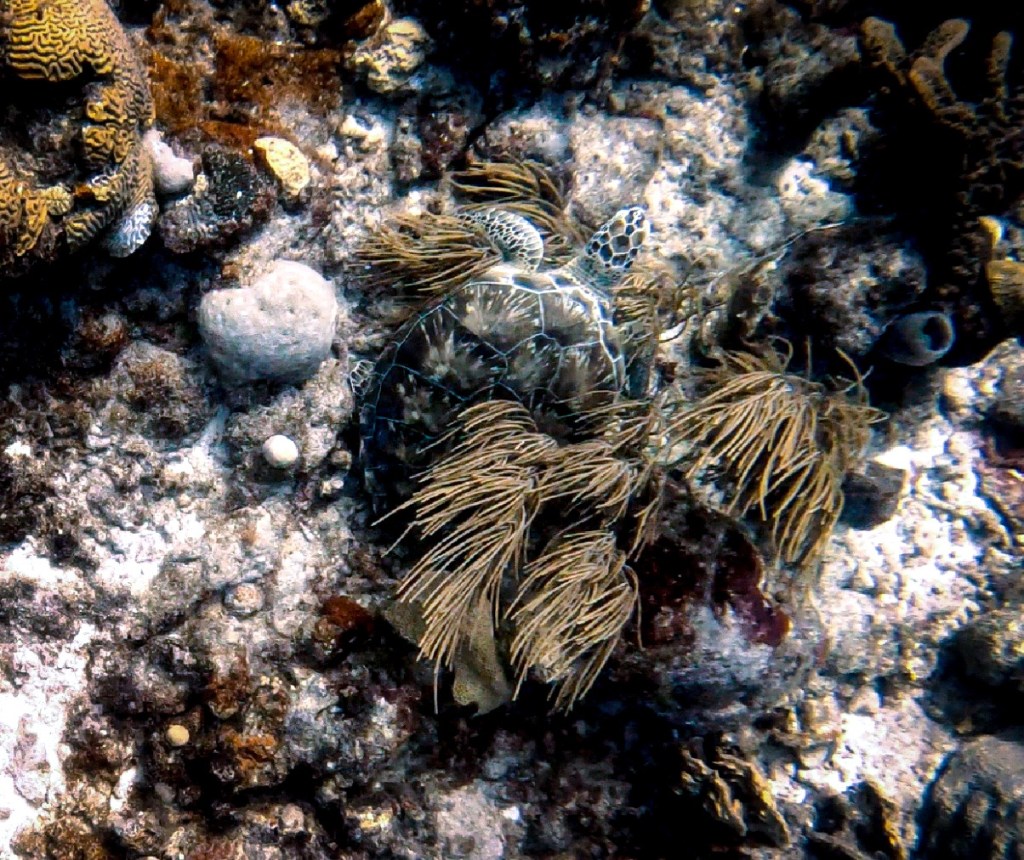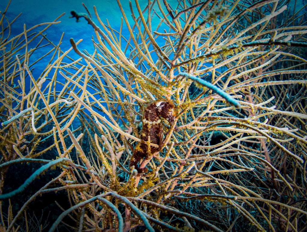 Not all seahorses can be seen up in the soft coral, you really have to look for some of them. Just look at this next image. If the guide had not located this seahorse, I don’t think anyone would have picked up on it, plus one of the other divers was carrying a magnifying glass, which really helped in this case.